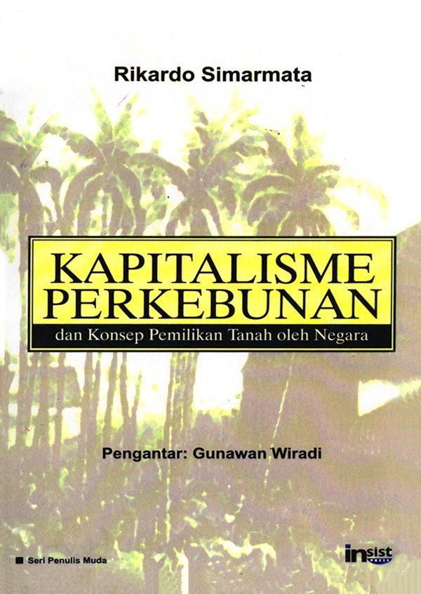 •Judul: Kapitalisme Perkebunan dan Konsep Pemilikan Tanah oleh Negara •Penulis: Rikardo Simarmata •Pengantar: Gunawan Wiradi •Penerbit: INSISTPress •Edisi: I, Mei 2002 •Kolasi: 15 x 21cm; lxii + 235 halaman.