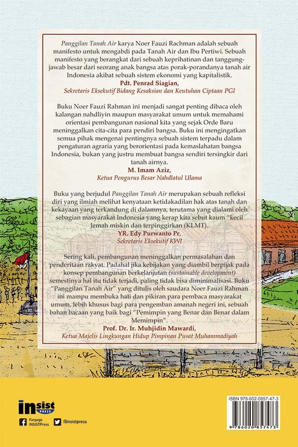 “Panggilan Tanah Air karya Noer Fauzi Rachman adalah sebuah manifesto untuk mengabdi pada Tanah Air dan Ibu Pertiwi. Sebuah manifesto yang berangkat dari sebuah keprihatinan dan tanggung-jawab besar dari seorang anak bangsa atas porak-porandanya tanah air Indonesia akibat sebuah sistem ekonomi yang kapitalistik.” Pdt. Penrad Siagian, Sekretaris Eksekutif Bidang Kesaksian dan Keutuhan Ciptaan PGI