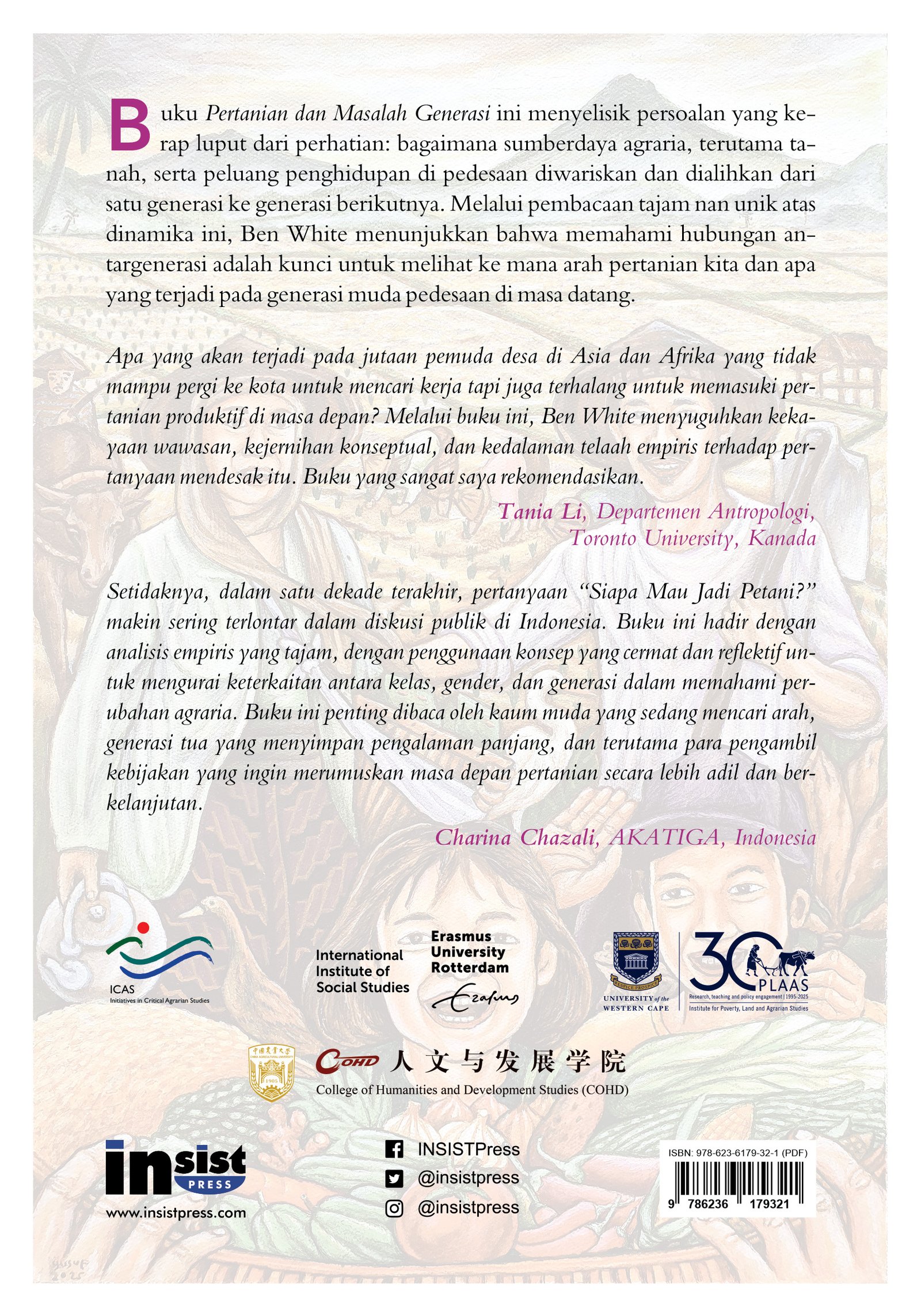 Buku ini menyelisik persoalan yang kerap luput dari perhatian: bagaimana sumberdaya agraria, terutama tanah, serta peluang penghidupan di pedesaan diwariskan dan dialihkan dari satu generasi ke generasi berikutnya. Melalui pembacaan tajam nan unik atas dinamika ini, Ben White menunjukkan bahwa memahami hubungan antargenerasi adalah kunci untuk melihat ke mana arah pertanian kita dan apa yang terjadi pada generasi muda pedesaan di masa datang.
