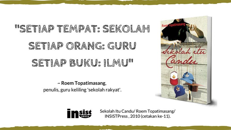 *Rehal buku: Sekolah Itu Candu/ Roem Topatimasang/ Toto Rahardjo/ INSISTPress , 2010 (cetakan ke-11).