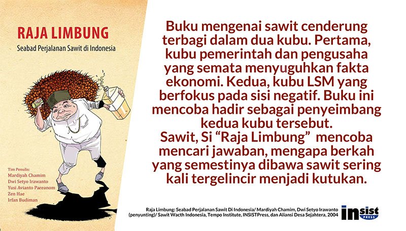 *Rehal buku: Raja Limbung. Seabad Perjalanan Sawit Di Indonesia/ Mardiyah Chamim, Dwi Setyo Irawanto (penyunting)/ Sawit Wacth Indonesia, Tempo Institute, INSISTPress, dan Aliansi Desa Sejahtera, 2012.