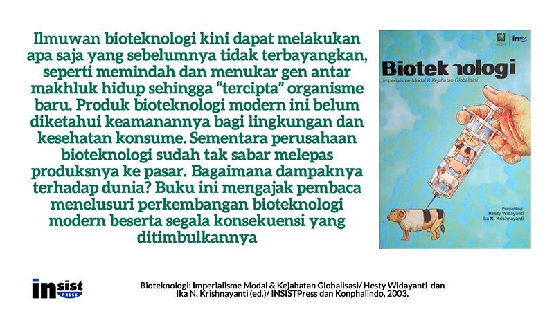 *Rehal buku: Bioteknologi: Imperialisme Modal & Kejahatan Globalisasi/ Hesty Widayanti dan Ika N. Krishnayanti (ed.)/ INSISTPress dan Konphalindo, 2003.