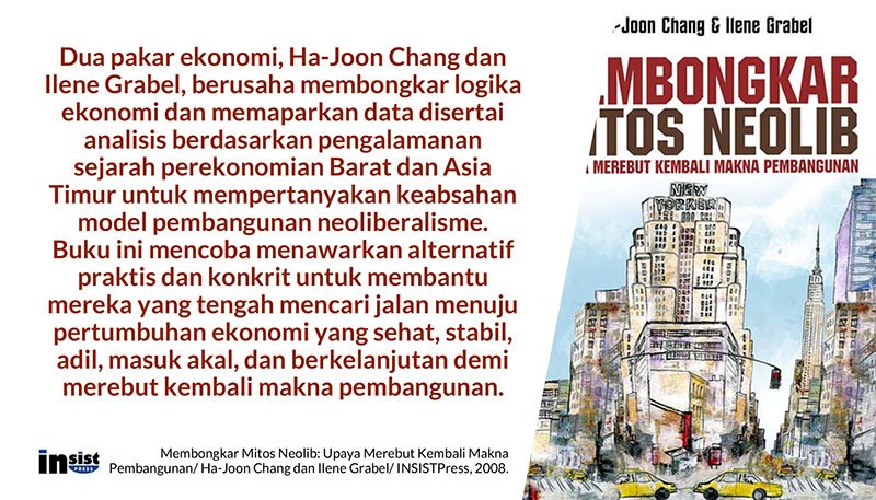 *Rehal buku: Membongkar Mitos Neolib: Upaya Merebut Kembali Makna Pembangunan/ Ha-Joon Chang dan Ilene Grabel/ Muh. Gusti Zainal (penerjemah)/ INSISTPress, 2008.