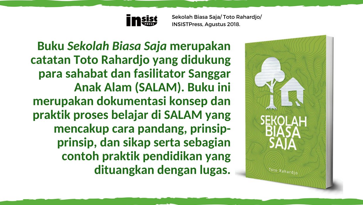 *Rehal buku: Sekolah Biasa Saja: Catatan Pengalaman Sanggar Anak Alam (SALAM)/ Toto Rahardjo/ INSISTPress, 2018.