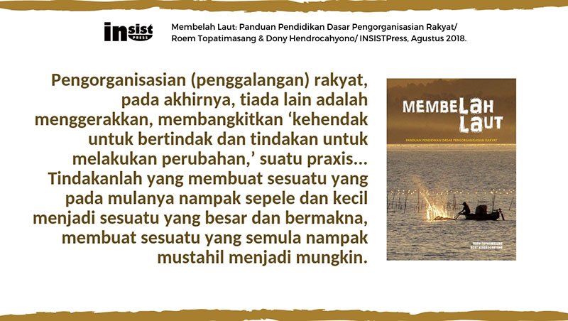 *Pengantar buku: Membelah Laut: Panduan Pendidikan Dasar Pengorganisasian Rakyat/ Roem Topatimasang & Dony Hendrocahyono / INSISTPress, HuMa, PerDikAn, dan Involvement, 2018.