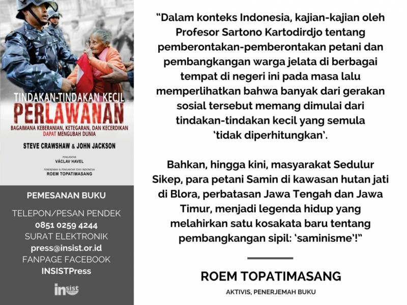 *Rehal buku: Tindakan-tindakan Kecil Perlawanan: Bagaimana Keberanian, Ketegaran dan Kecerdikan Dapat Mengubah Dunia/ Steve Crawshaw & John Jackson/ Roem Topatimasang/ INSISTPress, 2015.
