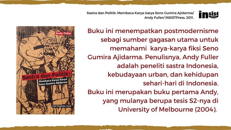 *Rehal buku: Sastra dan Politik: Membaca Karya-karya Seno Gumira Ajidarma/ Andy Fuller/ INSISTPress, 2011.