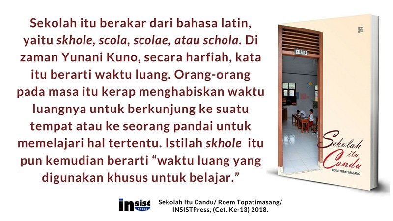 *Rehal buku: Sekolah Itu Candu/ Roem Topatimasang/ INSISTPress, (Cet. Ke-13) 2018.